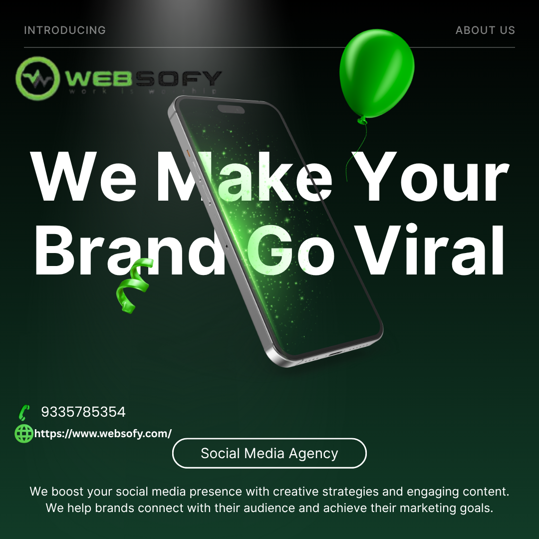 This promotional banner by Websofy highlights their expertise as one of the best social media marketing companies near me in Lucknow. Designed with a sleek green aesthetic, the image features a glowing smartphone, festive green balloon, and ribbon elements that symbolize digital growth and engagement. The bold headline emphasizes trust and credibility, while clear contact details—including the website www.websofy.com and phone number 9335785354—make it easy for potential clients to reach out. The call-to-action button labeled "Social Media Agency" encourages users to take the next step in boosting their